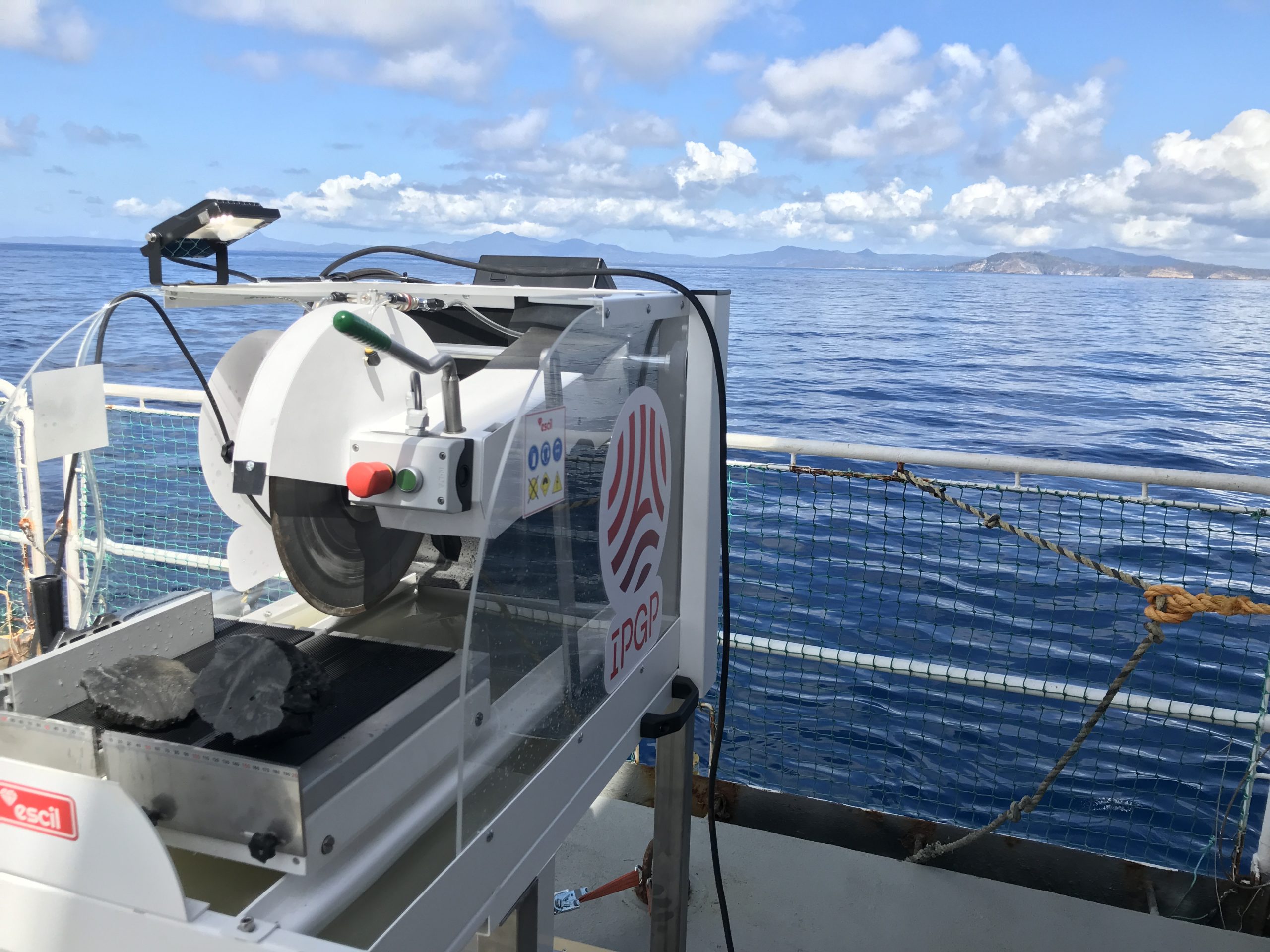 Pour réaliser les forages et diverses expériences en mer, les laboratoires ont besoin de différents matériels tels qu’une tronçonneuse débiteuse, des cuves à ultrason, des télescopes ainsi que divers instruments de mesure et accessoires.