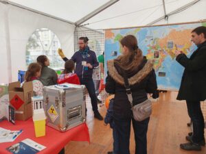 Pour l’occasion, nous avions préparé un quiz ludique et un petit jeu interactif autour des matières dangereuses — une façon originale et pédagogique de sensibiliser le public à des enjeux souvent méconnus, mais cruciaux dans les laboratoires de recherche.